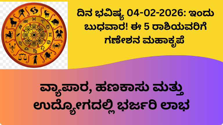 ಇಂದು ಫೆಬ್ರವರಿ 04, 2026, ಬುಧವಾರ. ಜ್ಯೋತಿಷ್ಯಶಾಸ್ತ್ರದಲ್ಲಿ ಬುಧವಾರವು ಬುದ್ಧಿ, ಸಂವಹನ, ವ್ಯಾಪಾರ, ವಿದ್ಯೆ ಮತ್ತು ಹಣಕಾಸಿಗೆ ಸಂಬಂಧಿಸಿದ ದಿನವಾಗಿದೆ. ಈ ದಿನ ಗಣೇಶನನ್ನು ಆರಾಧಿಸಿದರೆ ವಿಘ್ನಗಳು …